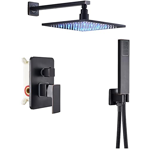 🔥 Cashback up to 70% Rozin 10 Inch LED Light Bathroom Luxury Rain Mixer Shower Combo Set Wall Mounted Rainfall Shower Head System Oil Rubbed Bronze Shower Faucet Rough-in Valve Body and Trim Included